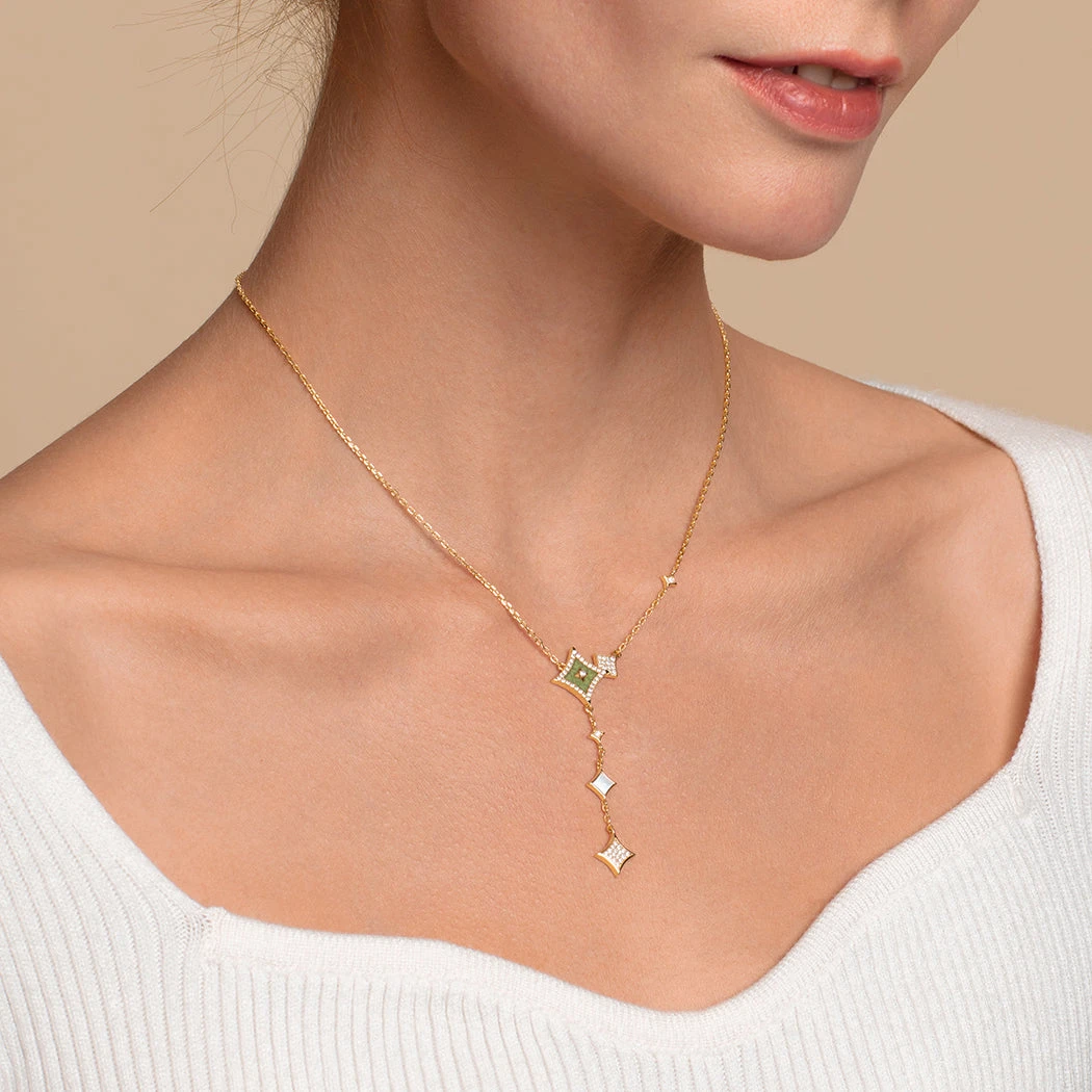 – Gemstone: Aventurine & Mother-of-Pearl & Synthetic Cubic Zirconia